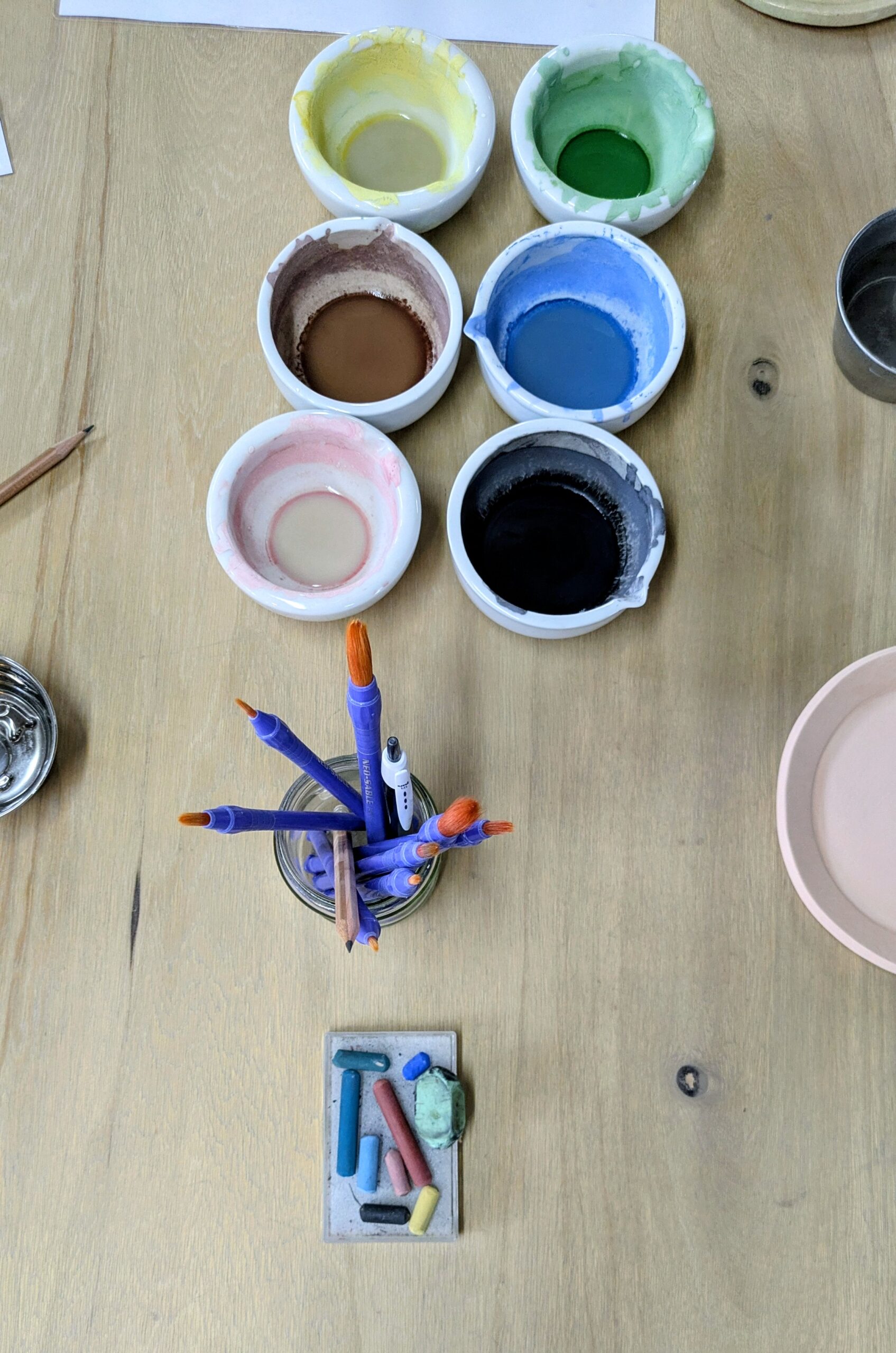 まず向かったのは、工房 「一隅舎」さんの絵皿の絵付け体験。